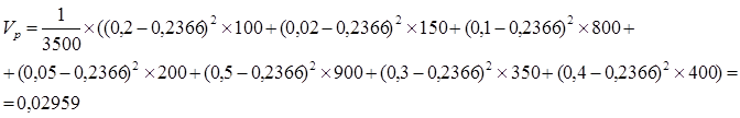 Рассчитаем дисперсию (вариацию) рисков по данному кредитному портфелю: